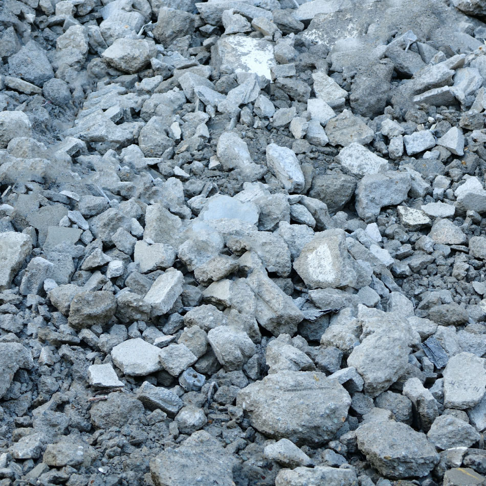 コンクリートガラやアスファルトガラは、道路などで使用する舗装用の路盤材や骨材として再生処理します。